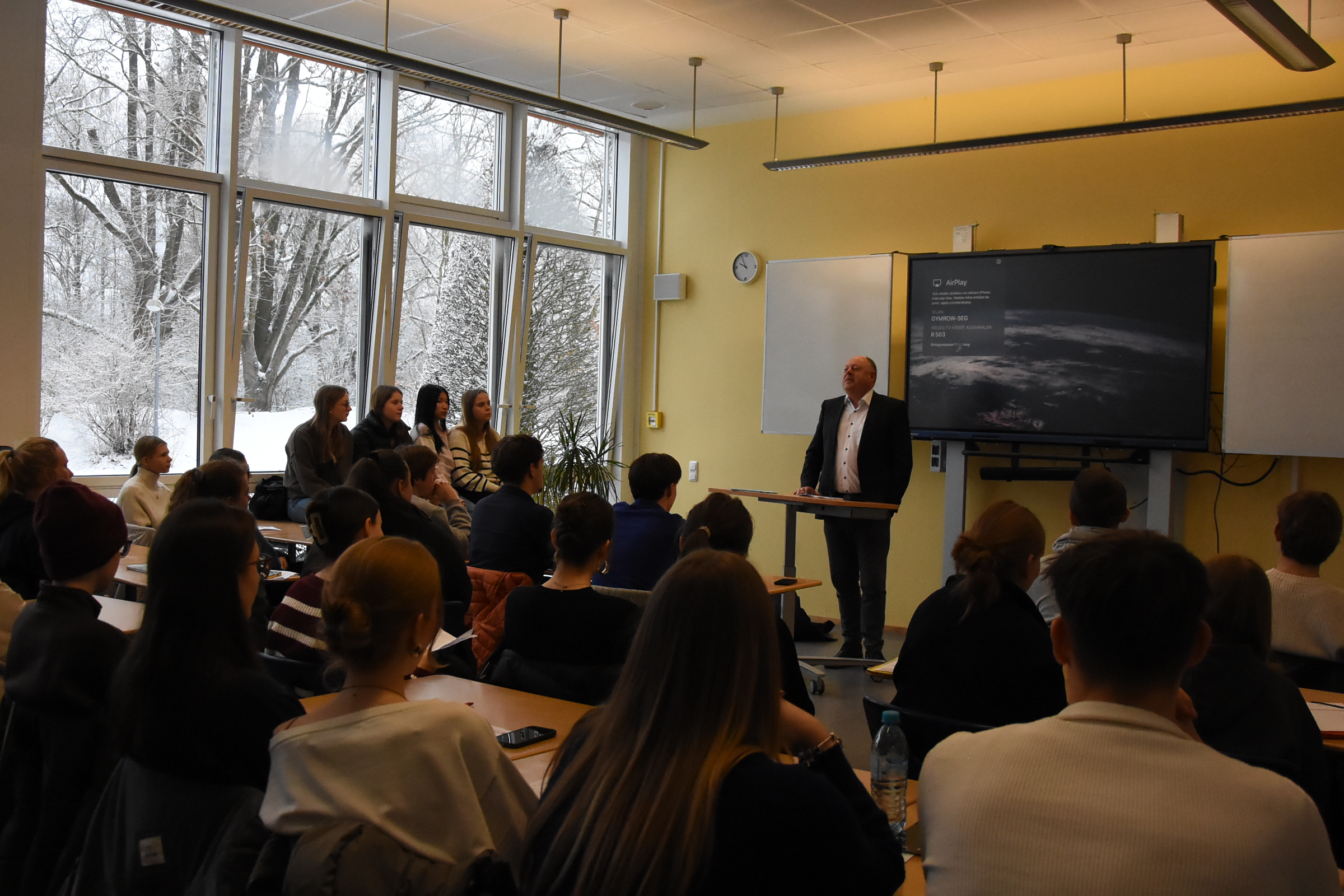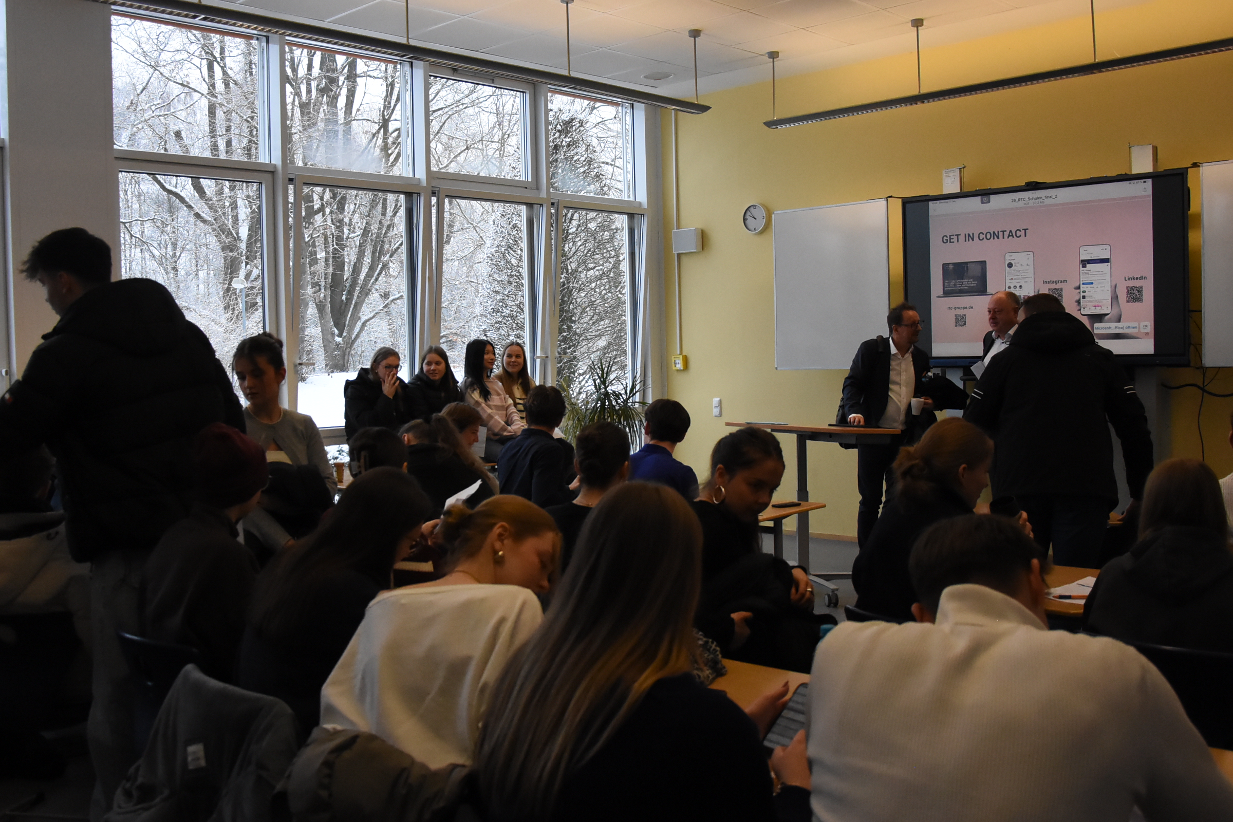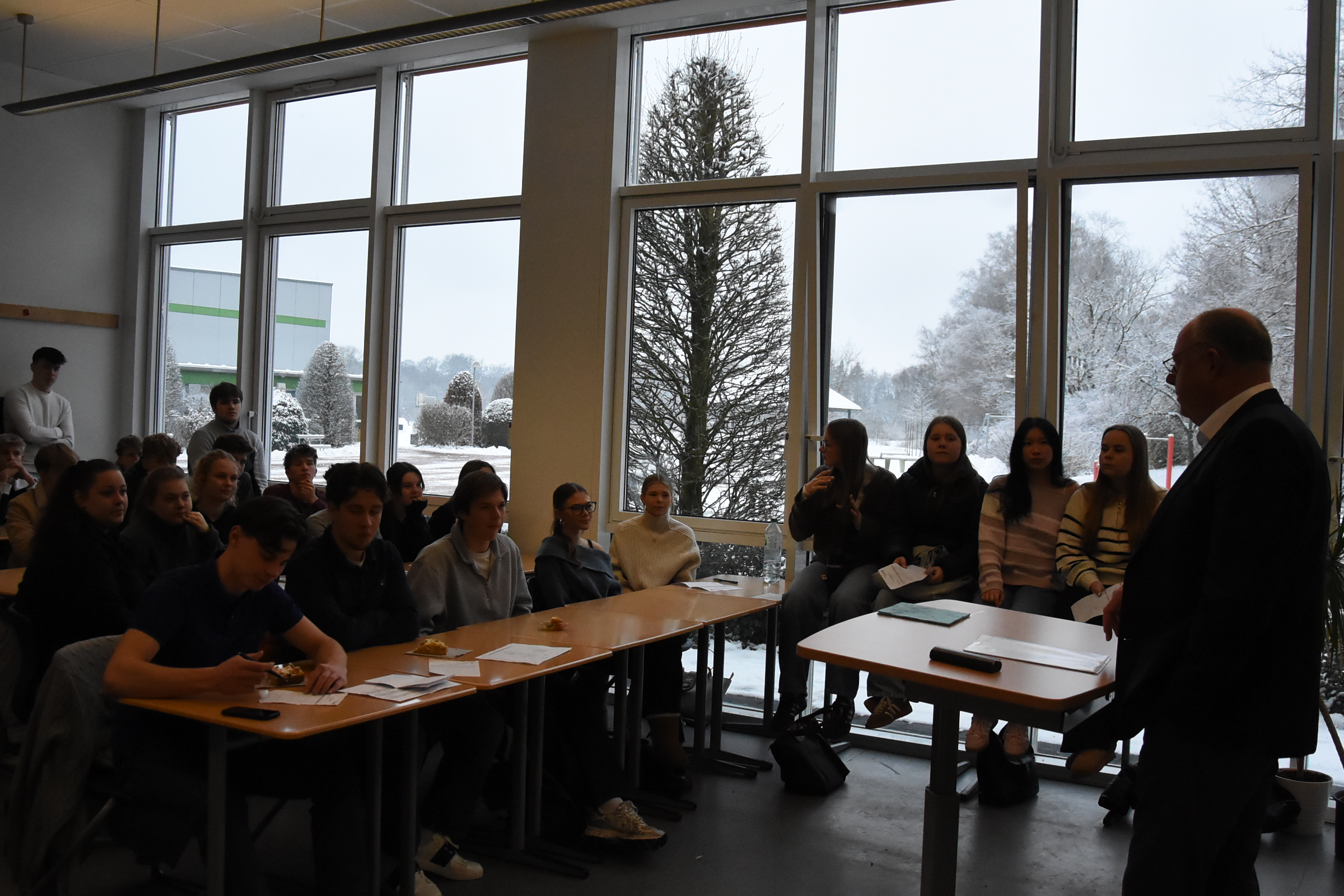 Der viele Schnee am Montag hätte fast zu einem digitalen Format in Form von Videokonferenzen geführt, aber nach anfänglichem Ruckeln und einigen Verspätungen konnten die Berufsinfotage beginnen. Durch Corona und die Bauarbeiten am Ratsgymnasium wurden die Berufsinformationstage zweimal ausgesetzt, zuletzt stattgefunden haben sie im Januar 2020. Doch jetzt am 26. und 27.01.2026 war es wieder so weit. Der Freundeskreis des Ratsgymnasium organisierte mit Herrn Artinger, dem Verantwortlichen für die Berufs- und Studienorientierung, nun schon zum 19. Mal die Berufsinfotage. Auch diesmal wurden wieder über 60 Referentinnen und Referenten aus den unterschiedlichsten Berufs- bzw. Studienfeldern eingeladen, die über Möglichkeiten und Bildungswege berichteten. Die Schülerinnen und Schüler des 12. und 13. Jahrgang konnten nach eigenem Interesse auswählen. Insgesamt besuchten sie verbindlich bis zu fünf Vorträge am Tag. Die Resonanz der Schülerinnen und Schüler war insgesamt sehr positiv. In einem für die Veranstaltung eingerichteten Café konnten sich alle Teilnehmenden austauschen. Auf Spendenbasis stellte der 12. Jahrgang auch Kuchen zur Verfügung, der von allen Teilnehmenden dankbar angenommen wurde.