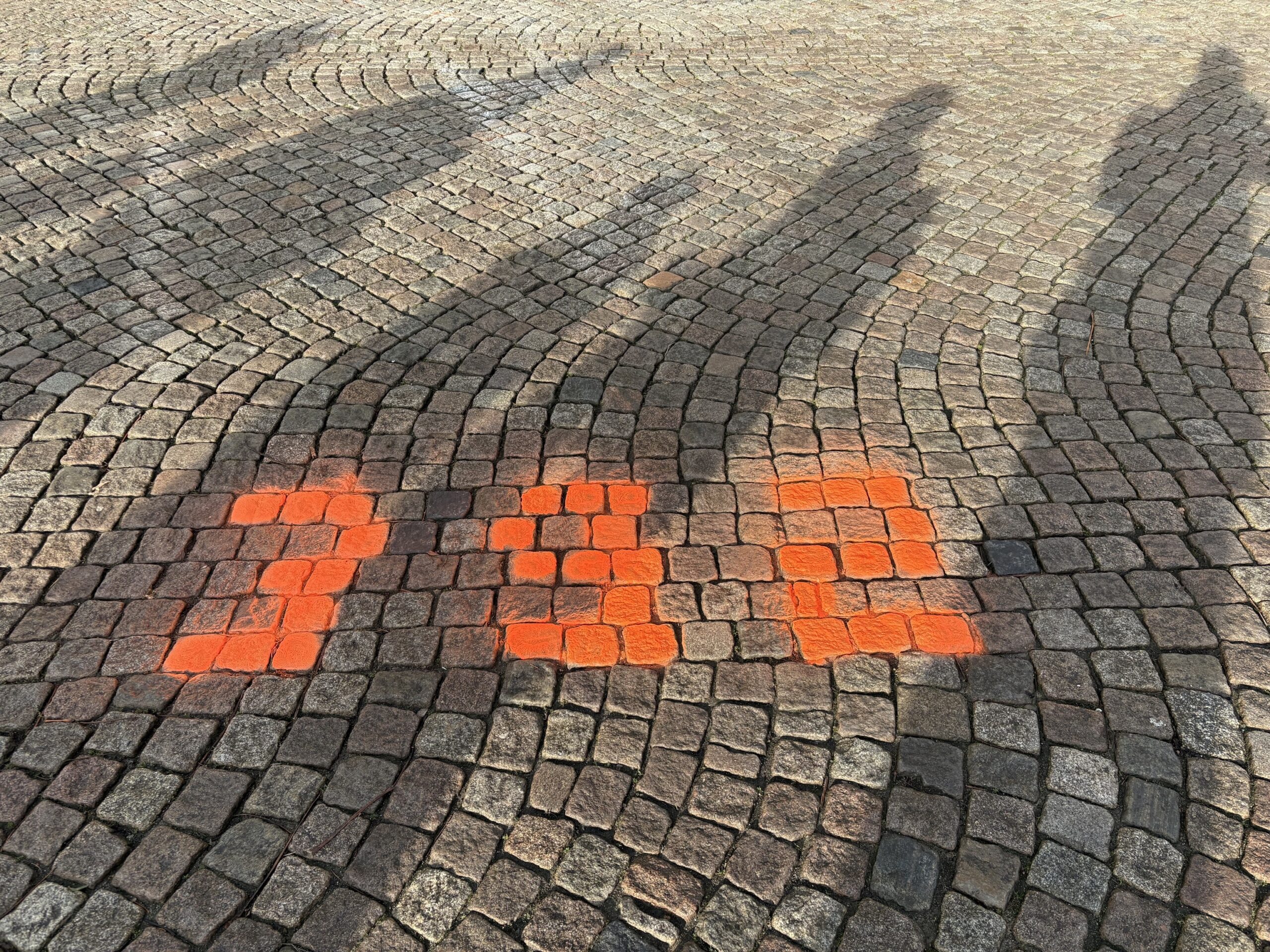 392 registrierte (!) Fälle häuslicher Gewalt wurden allein im Landkreis Rotenburg gezählt – der Internationale Tag zur Beendigung der Gewalt gegen Frauen und Mädchen, der jedes Jahr am 25.11. begangen wird, erfordert leider auch hier alle Aufmerksamkeit und mehr Anstrengungen. So sieht das auch die 8. Klasse am Ratsgymnasium, die im Rahmen des Politikunterrichts eine Exkursion zum Rathaus unternommen hat, um die skandalöse Zahl 392 mit grell orangefarbenem Kreidespray vor das Rathaus auf das Marktpflaster zu sprühen – wie um 12 Uhr viele ähnliche Aktionen vor öffentlichen Gebäuden im Landkreis auf diesen unerträglichen Missstand hinzuweisen versuchen. Rotenburgs Gleichstellungsbeauftragte, Frau Rissiek, war bei dieser Aktion anwesend und von dem Engagement der Schüler_innen begeistert!